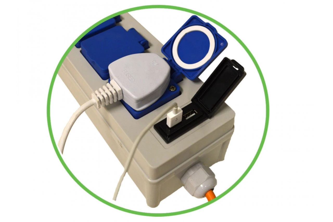 USB and 230V 16A camping mains power unit for caravanning and camping