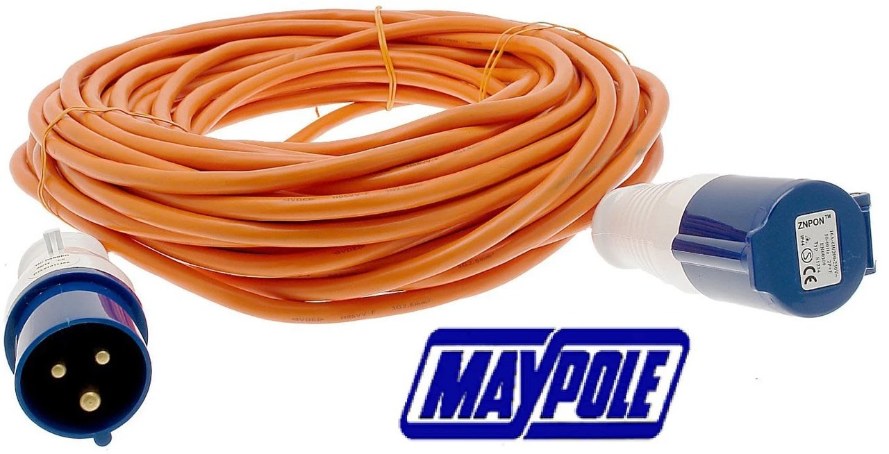 Supplied complete with a UK site plug, the Maypole Caravan and Motorhome 230v Mains Extension Hook Up is available with 25 metres of leads.