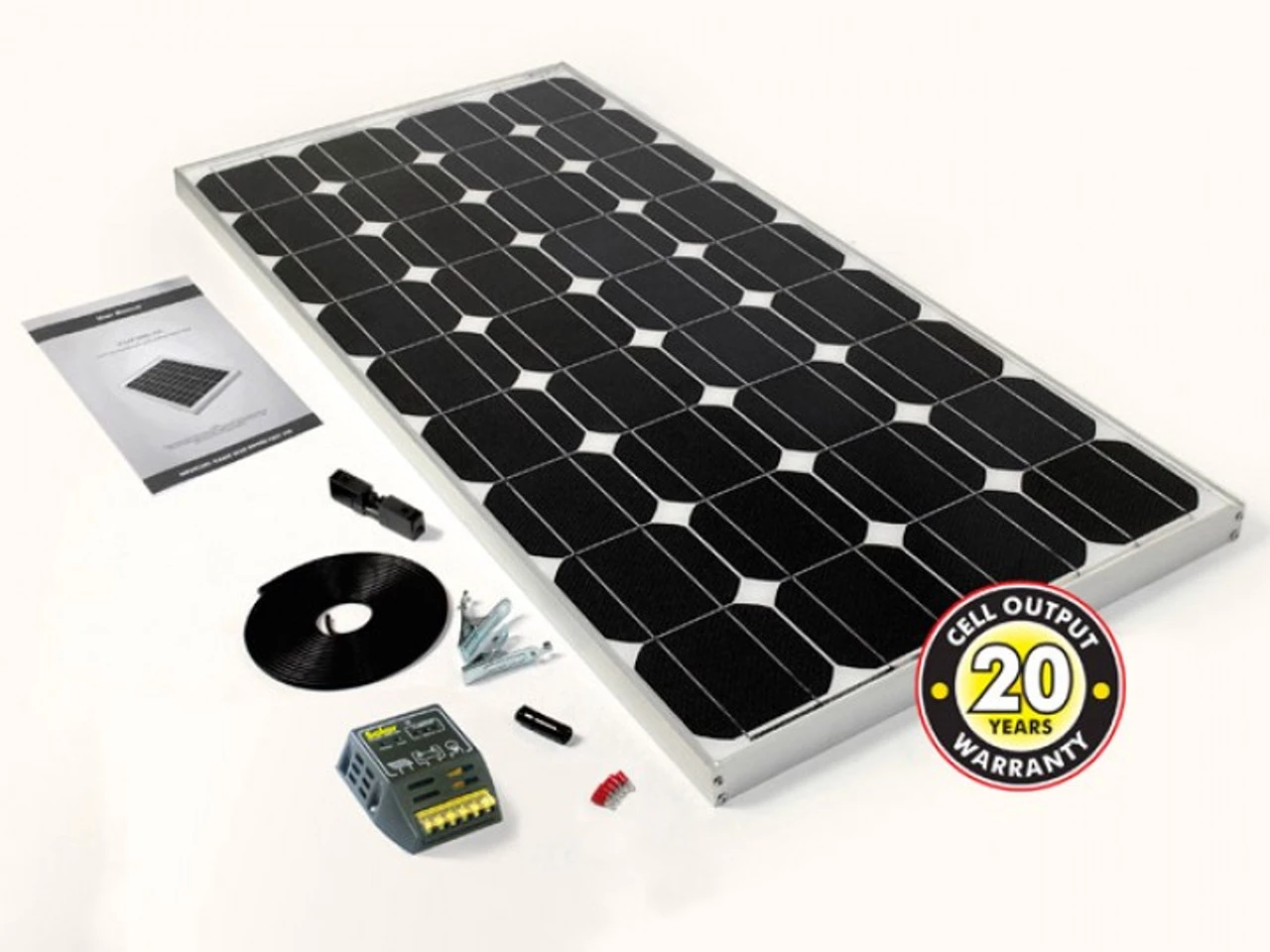 The PV Logic 80w Kit also comes supplied with an 8Ah Charge Controller which protects the battery from being overcharged and also prevents reverse current drain.