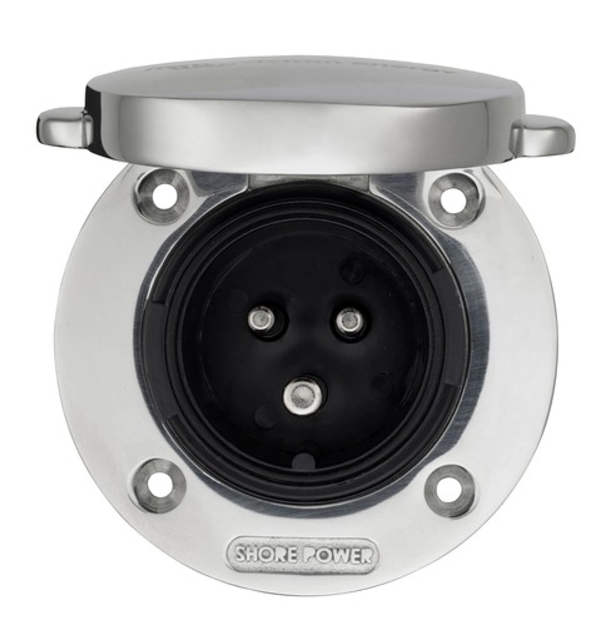 Sleek chrome mains inlet for marine and campervan